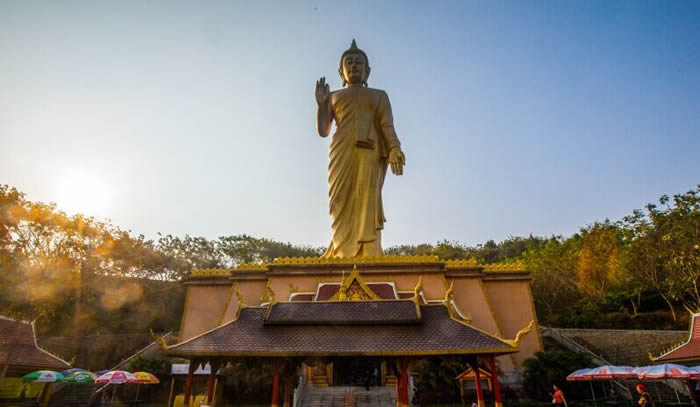 勐泐大佛寺位于云南省西双版纳傣族自治州州府景洪市城郊,按照国家AAAA级景区标准打造。勐泐大佛寺是在古代傣王朝的皇家寺院“景飘佛寺”的原址上恢复重建的,“景飘佛寺”是傣族历史上一位名叫拨龙的傣王为纪念病故的王妃南纱维扁而修建。王妃一生信奉佛法,所以每逢节日傣王就亲临寺院,举行大型法会,以纪念爱妃同时弘扬佛法。据史料记载:“景飘佛寺”始建于明代,是南传佛教象征十二版纳的标志性建筑之一,也是版纳佛教活动的重要场所。该建筑在佛历2883年(即公元1848年,清咸丰年间)战争中被毁,距今已有169年。佛寺于2005年开始重建,于同年3月9日举行了大型的土地开光仪式,于2005年5月9日举行了盛大的大殿奠基开光仪式,在大殿施工时,挖掘出大量的银币、银盒、佛教法事用品等。佛寺于2007年11月3日一期工程竣工,竣工之时,邀请了海内外108位高僧为佛寺举行了盛大的开光大典,州内外参加开光大典的各民族佛教信众达65万人之多。 占地面积400亩,佛寺依山而建,落差达122.8米,呈坐佛形,为国内外所独有。景区以佛祖释迦牟尼的生平及佛寺活动为主线,巧妙融入到景观及建筑群体中,充分展示南传佛教的历史与传统文化色彩。从万佛塔前广场俯视景洪市区,旖旎的热带风光尽收眼底。